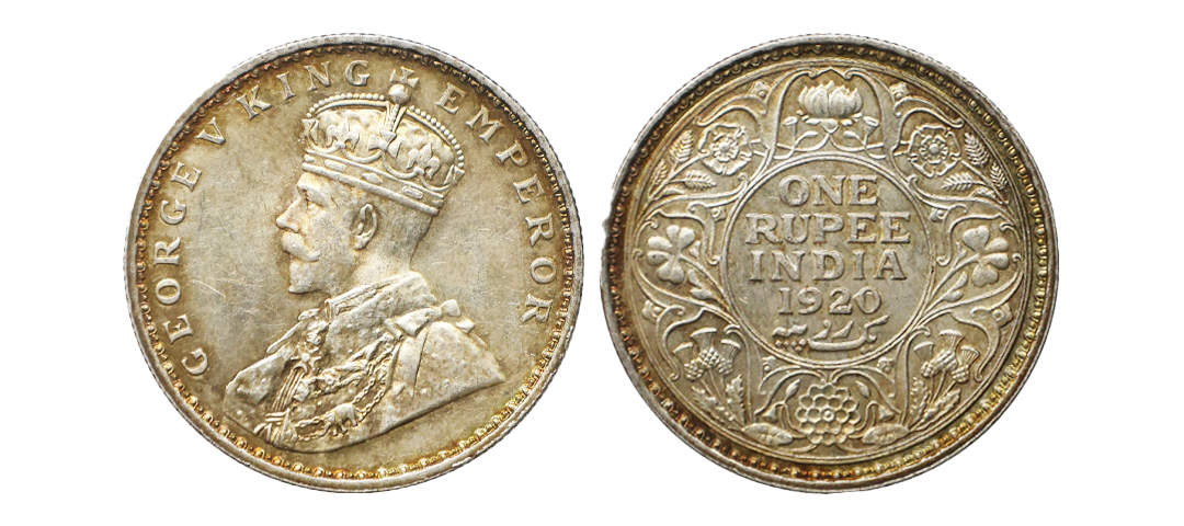 George V, 1919, Silver Rupee, Bombay Mint, Obverse D type, Crudish legends on Obverse, Extremely Rare, unlisted in any Reference Catalogues.