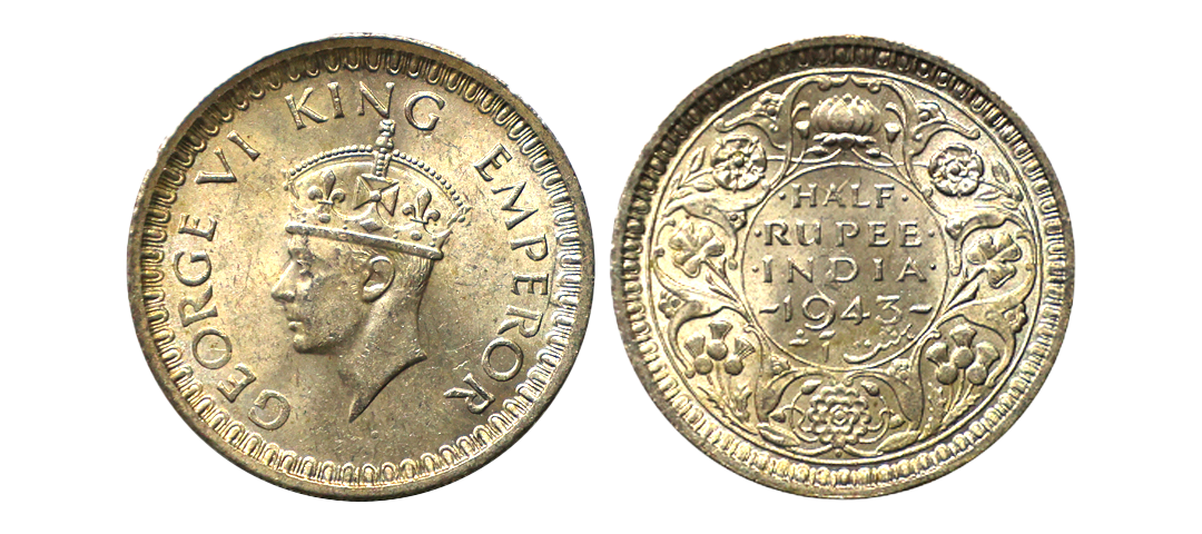 George VI , 52% Silver 1/2 Rupee, Set of 2 Variety Coins, 1942,Obv. A (Large Head) and Obv. B, Rev. I(b), Bombay Mint, Dot, XF.