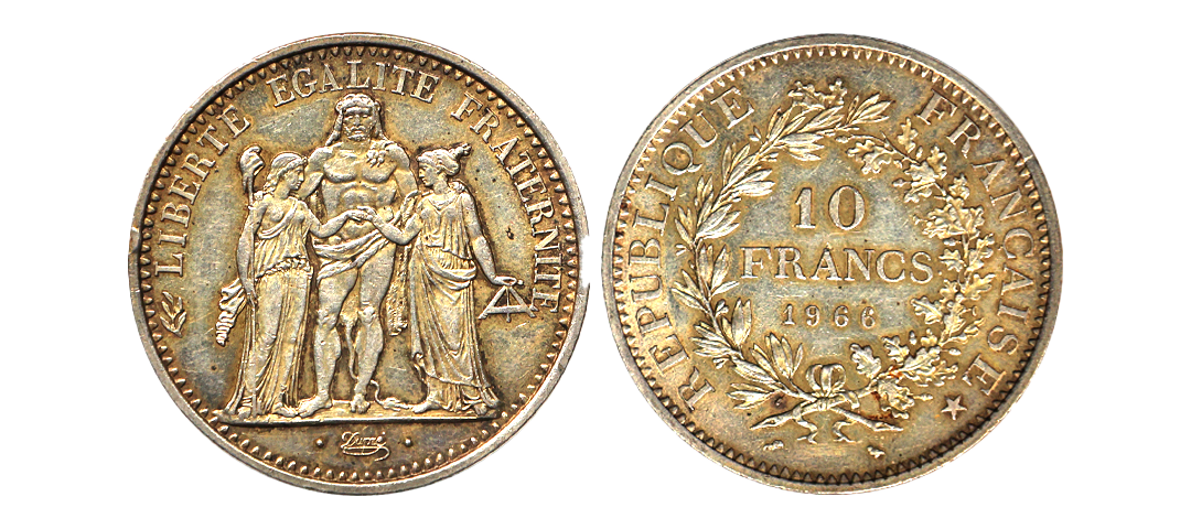 France, Third Republic, 1848, Silver 5 Francs, obv. Hercules standing facing between Liberty and Equality, Paris Mint, 24.55grams, Very Fine.