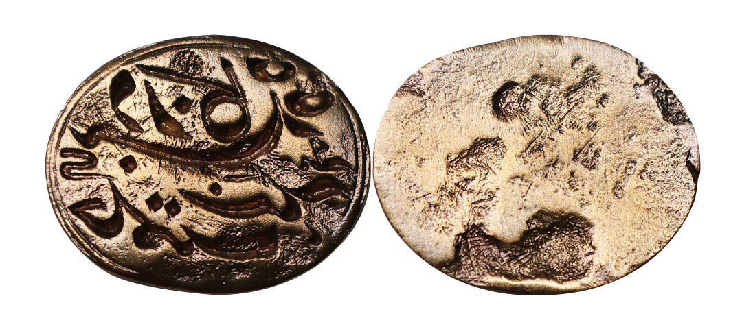 Gold Token, Forgery, 13.48 gms, Imitating Jahangir Gold Portrait Mohur, Obv. radiate Jahangir cross-legged left on ornate throne against patterned cushion holding flower or gobletd, legends around, Rev. central radiate sun within pelleted quadrate border with upper and lower lines extending to create additional side panels, TOKEN, extremely fine.