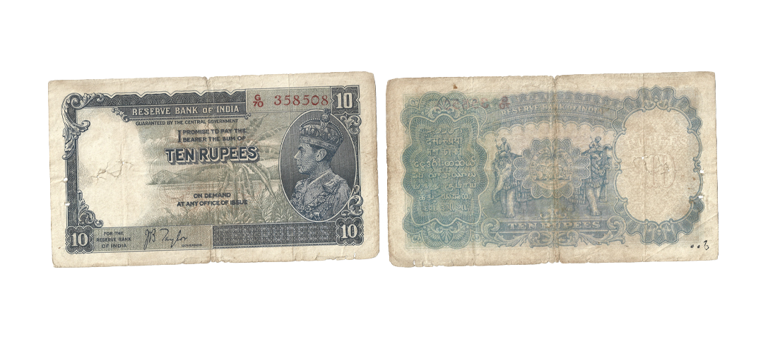 Burma, George VI, Rupees 10, 1938, signed J. B. Taylor, green colour, A Prefix, Serial No.: A34 220066 (J&R 5.5.1). About Extremely Fine, Scarce.