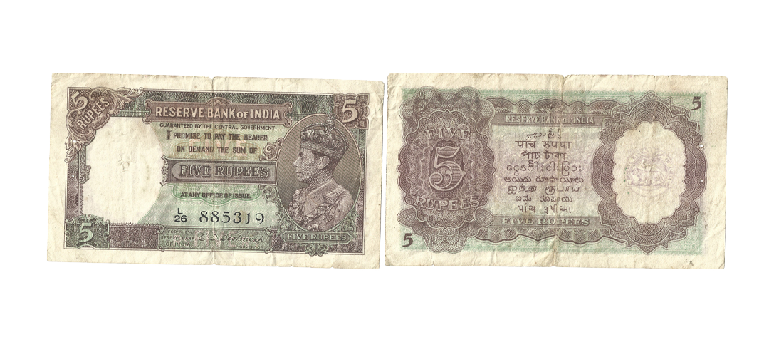 George VI, Rupee 1, 1940, signed C. E. Jones, serial number in black W17 717665, Prefix W. Pin Hole, About Very Fine.