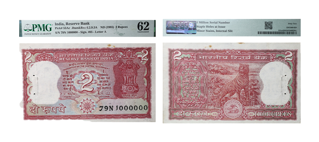 George VI, Rupees 10, 2nd issue, 1944, signed C. D. Deshmukh, E prefix, Serial No.: E12 953706, (J&R 4.6.1). Fine.