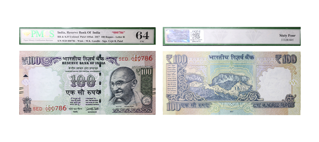 50 Rupees, 2011, Fancy Number, ladder, Old Gandhi Series, Signed by D. Subbarao, Inset L, Serial No. 3AK 123456, PMCS Graded 64 UNC, Stains Very Rare.