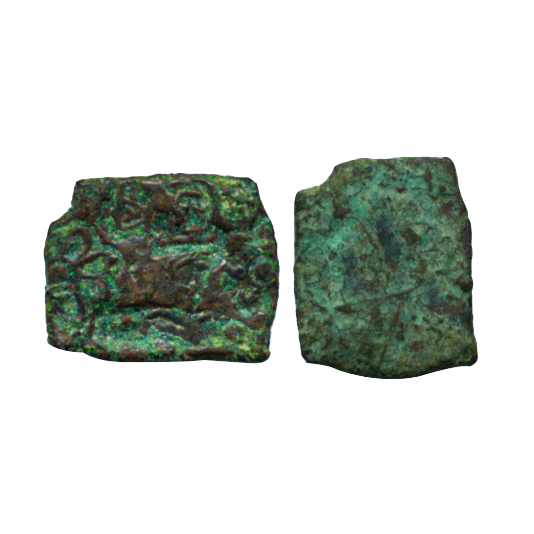 Punch Marked, Post-Mauryan, Vidisha Region, Copper Karshapana, 1.26Grms, Obv: Tree-in-railing, traingular headed standard and four orbs ujjaini symbol, Uniface. ( Pieper # 893). Very Fine.