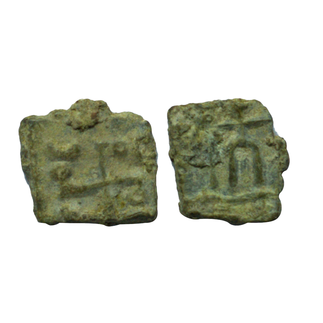 Post-Mauryan, Saurashtra Region, Copper Unit, 1.54Grms, Obv: Crude human figure holding stick in left hand, Rev: Swastika symbol taurine in each corner of swastika. Fine+.