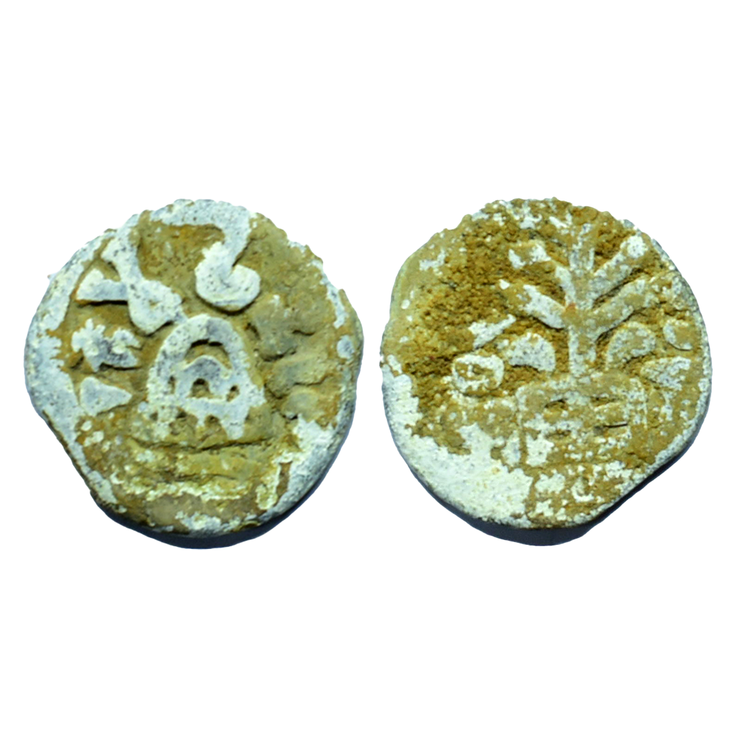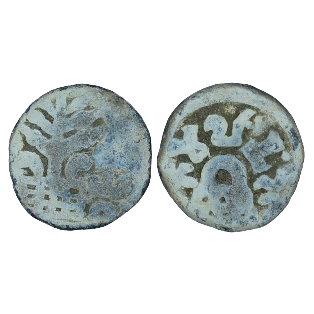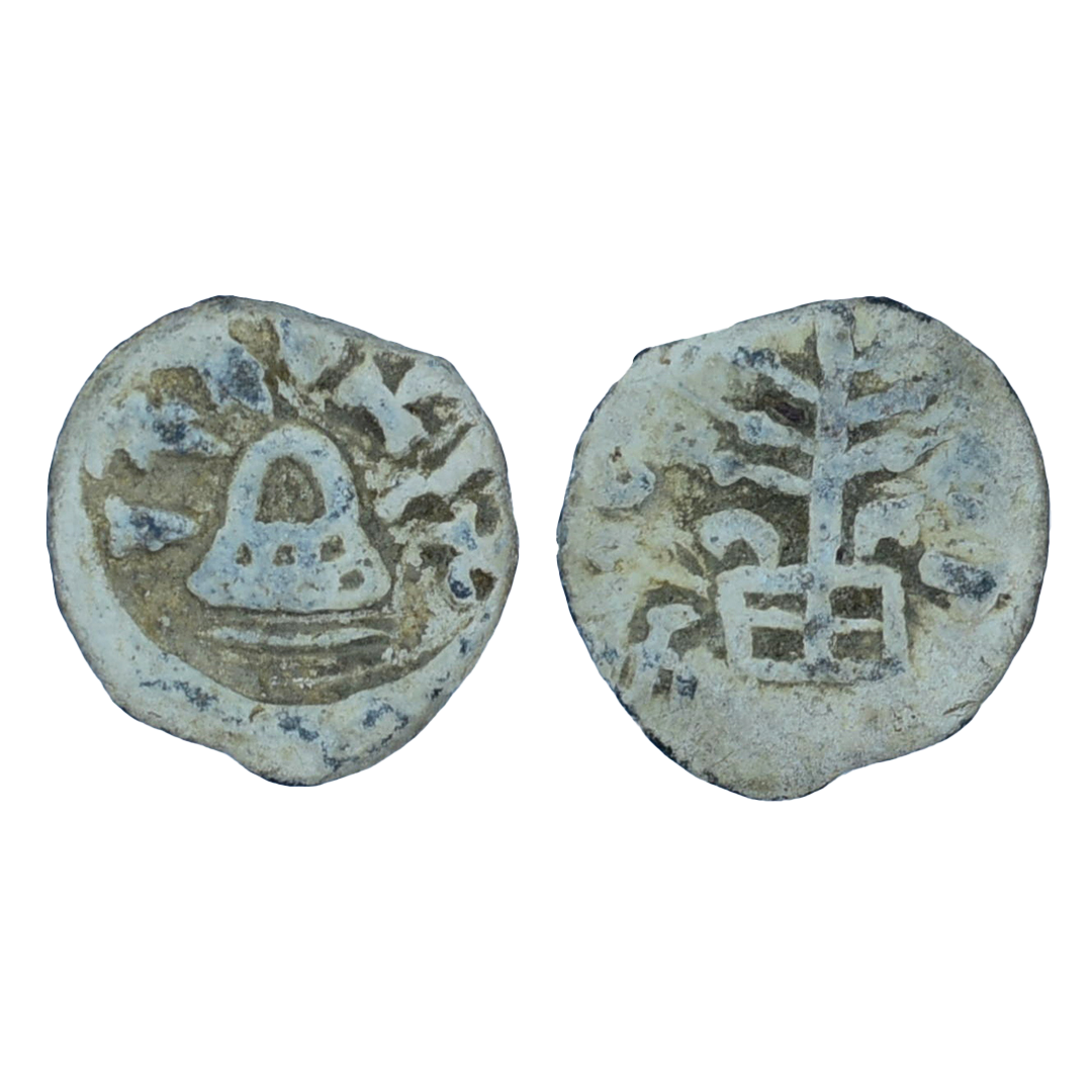 Anandas of Karwar, Chutukulananda, (280-320 AD), Lead Unit, 10.77 Grms, Obv: Eight arched hill in centre around bold Brahmi legend ‘RajnoChutukulanandasa’, Rev: Tree in railing within four compartments beside triratna symbol. (Pieper # 2084).Fine.