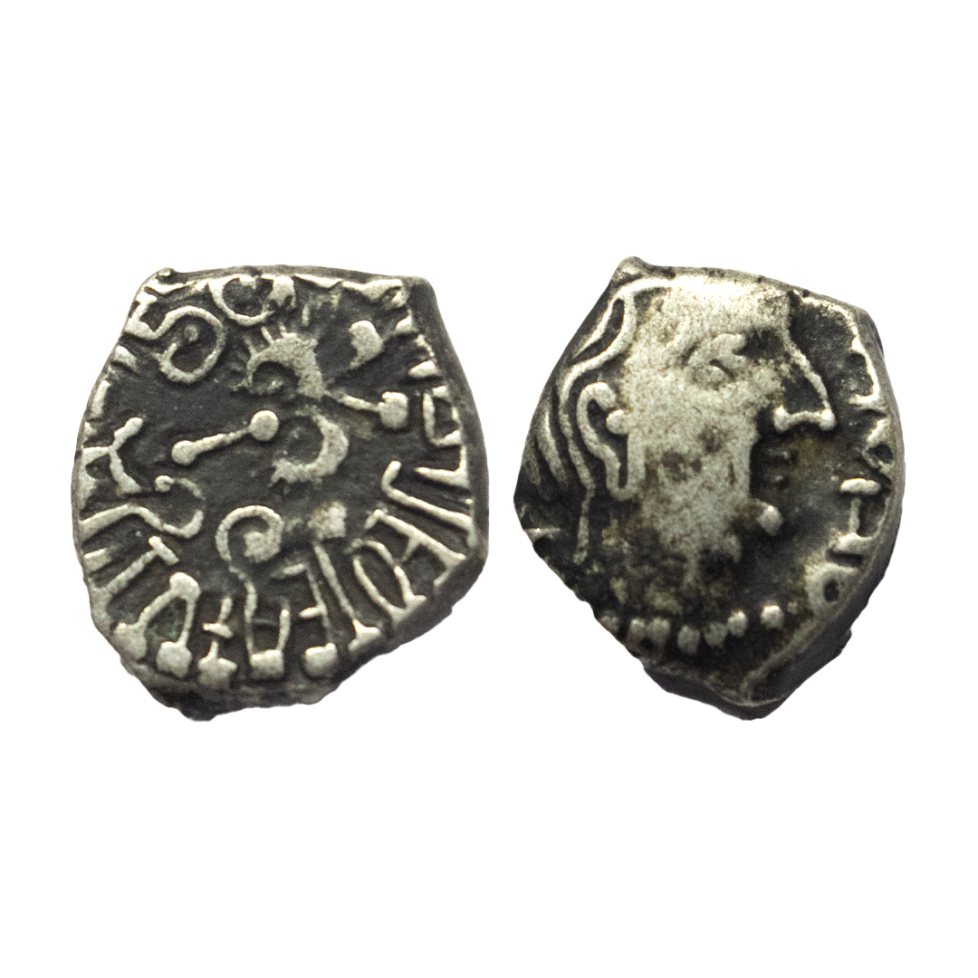 Guptas, Kumaragupta I (AD 414-455), Silver Drachma, GE 110, Garuda type, 1.79Grms, Obv: Portrait of the ruler facing to right, , Rev: The central figure of a Garuda and around Brahmi legend ‘ShriKumaragupta [mahendraditya]' around. (S. Kumar # pp. 333).Fine.