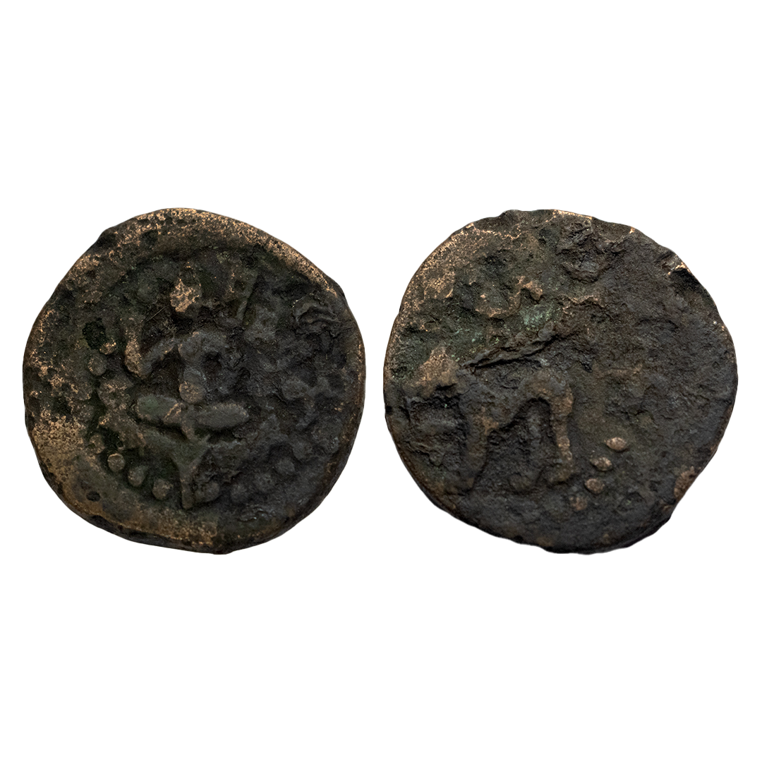 AncientWorld,Nepal, Lichhavi Period, King Sivadeva I (AD 576 - 605), Copper Unit, 12.08Grms, Obv: Lion left with Paw raised. Brahmi Sri Manaka, Rev: Seated Lakshmi with fingers raised. Sanskrit Legend Sri Bhogini. (Rhodes #5 RGV).
