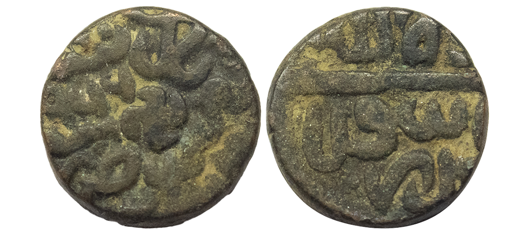Akbar (AH 963-1014 / 1556-1605 AD), Silver Mahmudi, 5.64Grms, Mulher Mint, AH 1026, with a peacock feather symbol on rev., Mahmudi's struck by the Raja of Baglana at Mulher. (KM # 72.1).