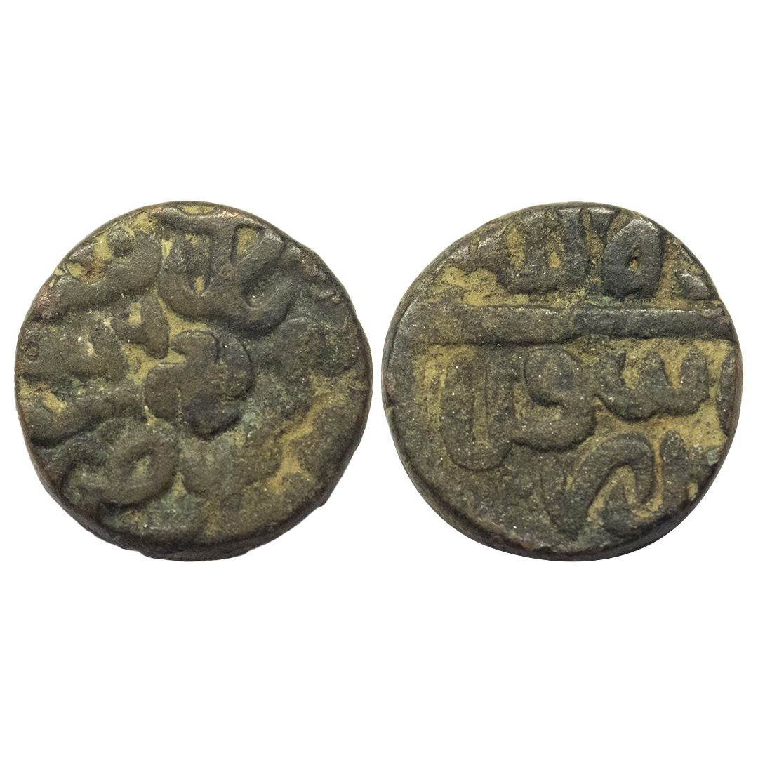 Akbar (AH 963-1014 / 1556-1605 AD), Silver Mahmudi, 5.64Grms, Mulher Mint, AH 1026, with a peacock feather symbol on rev., Mahmudi's struck by the Raja of Baglana at Mulher. (KM # 72.1).