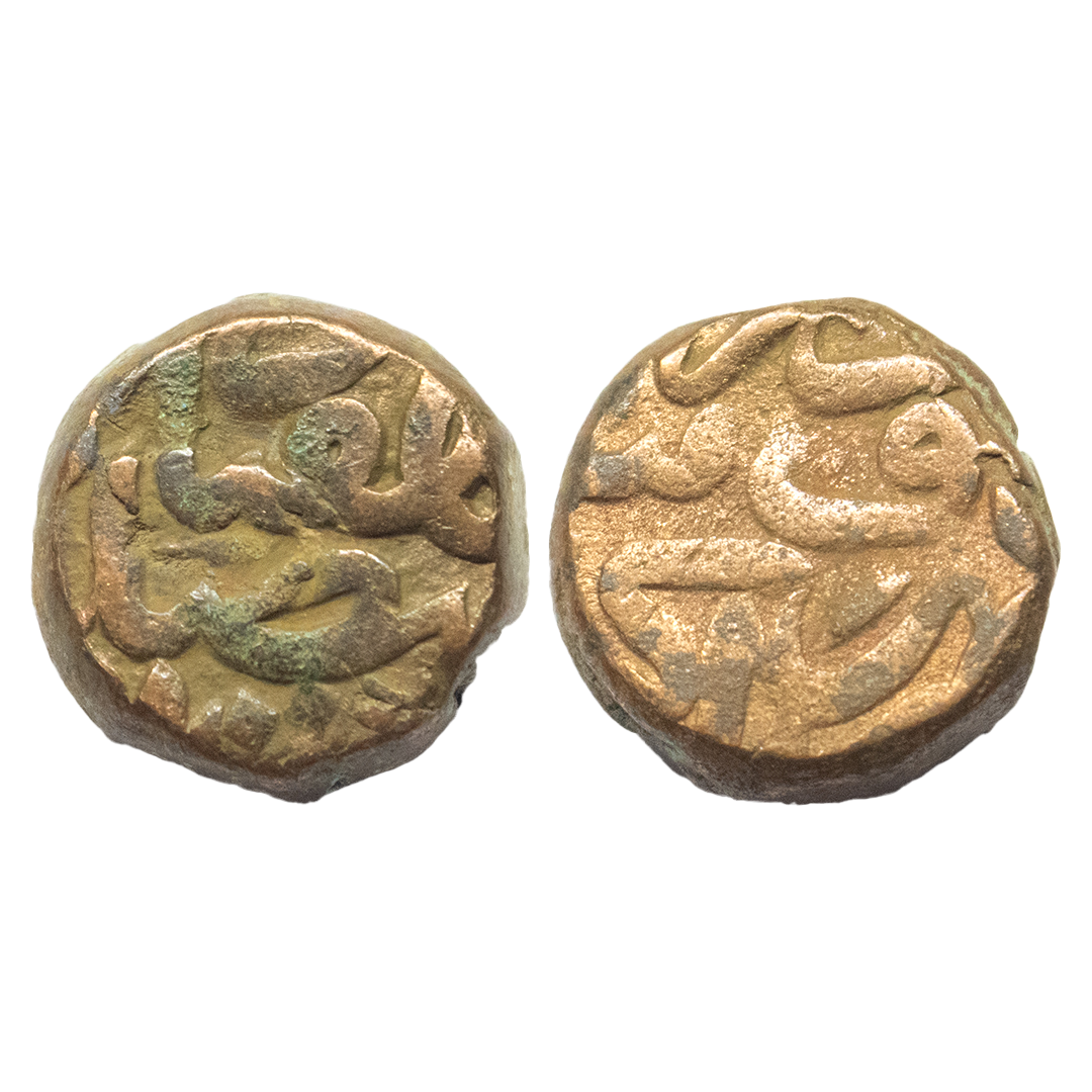 Akbar (AH 963-1014 / 1556-1605 AD), Silver Square Rupee, 11.27Grms, Mintless, Ilahi type, Month Shahrewar, Year 35, Jal-jalla-lah Allahu Akbar legend on obv., floral design on both sides. (KM # 90.1).