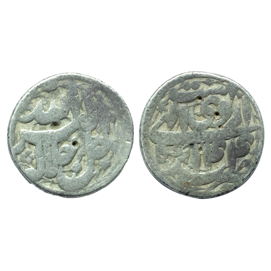 Akbar (AH 963-1014 / 1556-1605 AD), Silver Square Rupee, 11.27Grms, Mintless, Ilahi type, Month Shahrewar, Year 35, Jal-jalla-lah Allahu Akbar legend on obv., floral design on both sides. (KM # 90.1).