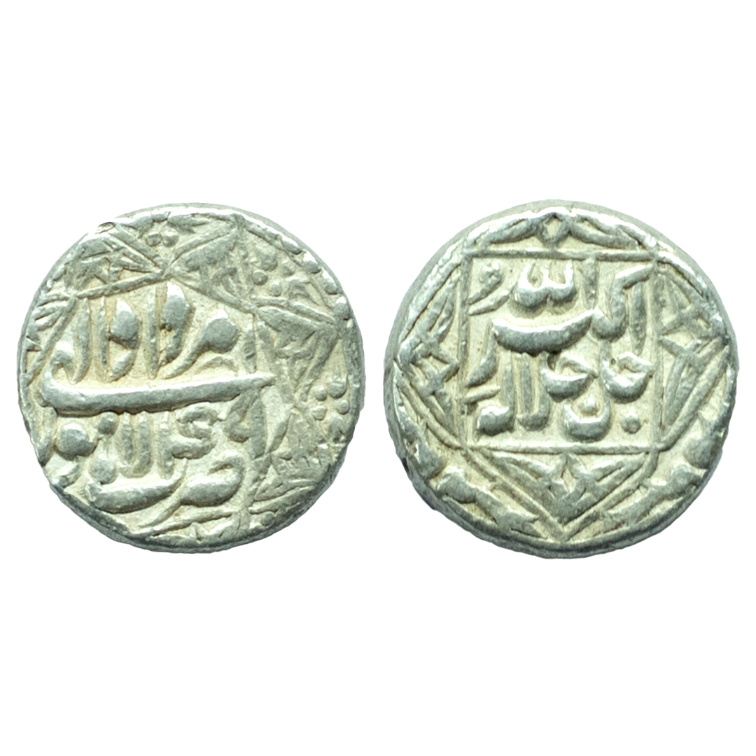 Akbar (1556-1605 AD), silver rupee, Lahore mint, Farwardin 49, KM 94.3, 11.40g, legend within square quatrefoil border on obverse and octagonal border on reverse.About extremely fine, Rare.