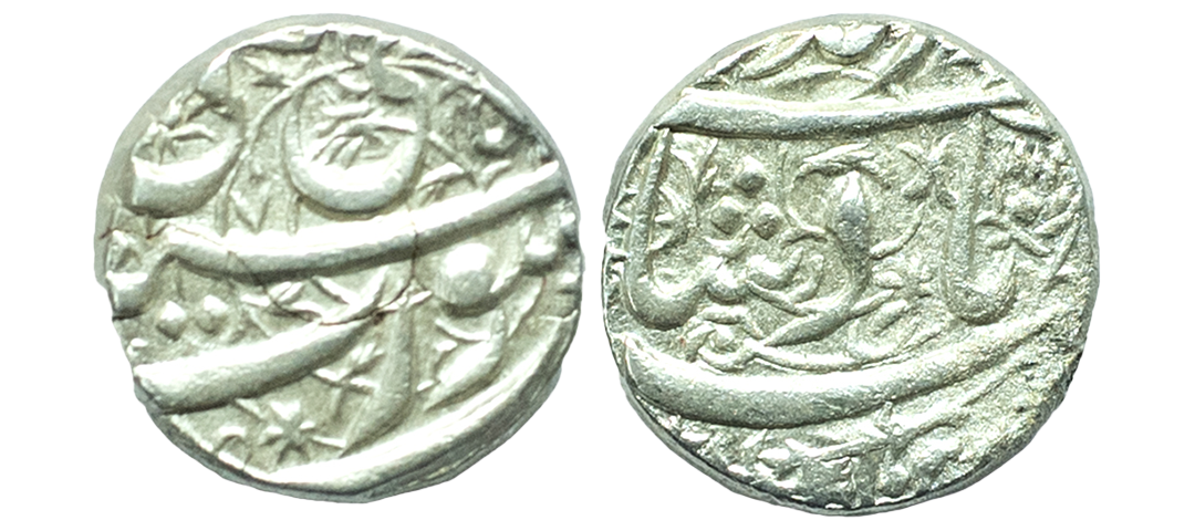 Jahangir (AH 1014-1037 / 1605-1627 AD), Silver Rupee (2 coins), Surat Mint, RY 27, Ilahi type, Month Di and Tir. (KM # 148.1).