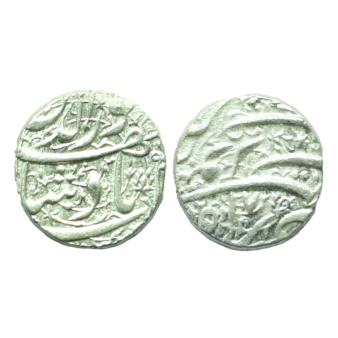 Jahangir (AH 1014-1037 / 1605-1627 AD), Silver Rupee (2 coins), Surat Mint, RY 27, Ilahi type, Month Di and Tir. (KM # 148.1).