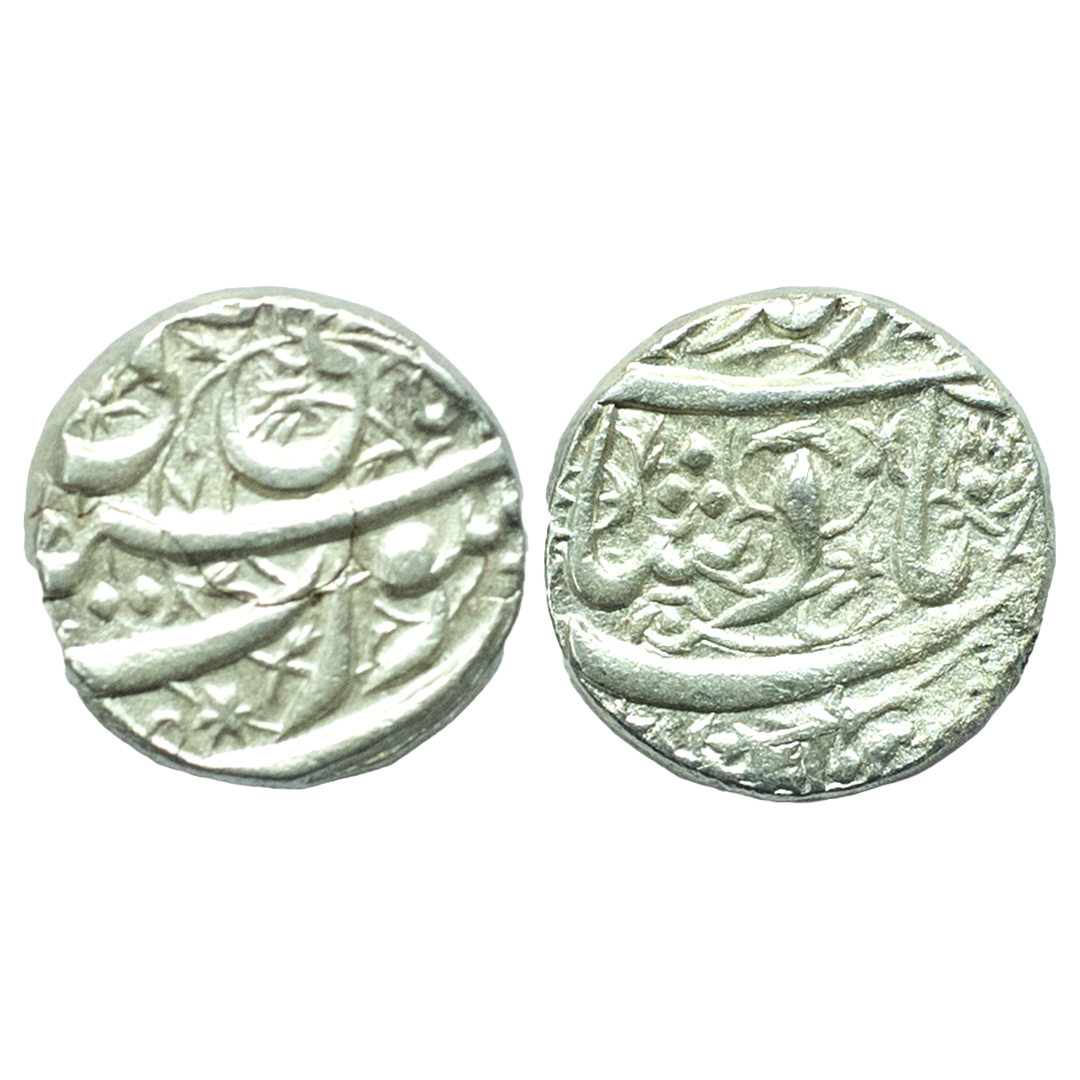 Jahangir (AH 1014-1037 / 1605-1627 AD), Silver Rupee (2 coins), Surat Mint, RY 27, Ilahi type, Month Di and Tir. (KM # 148.1).