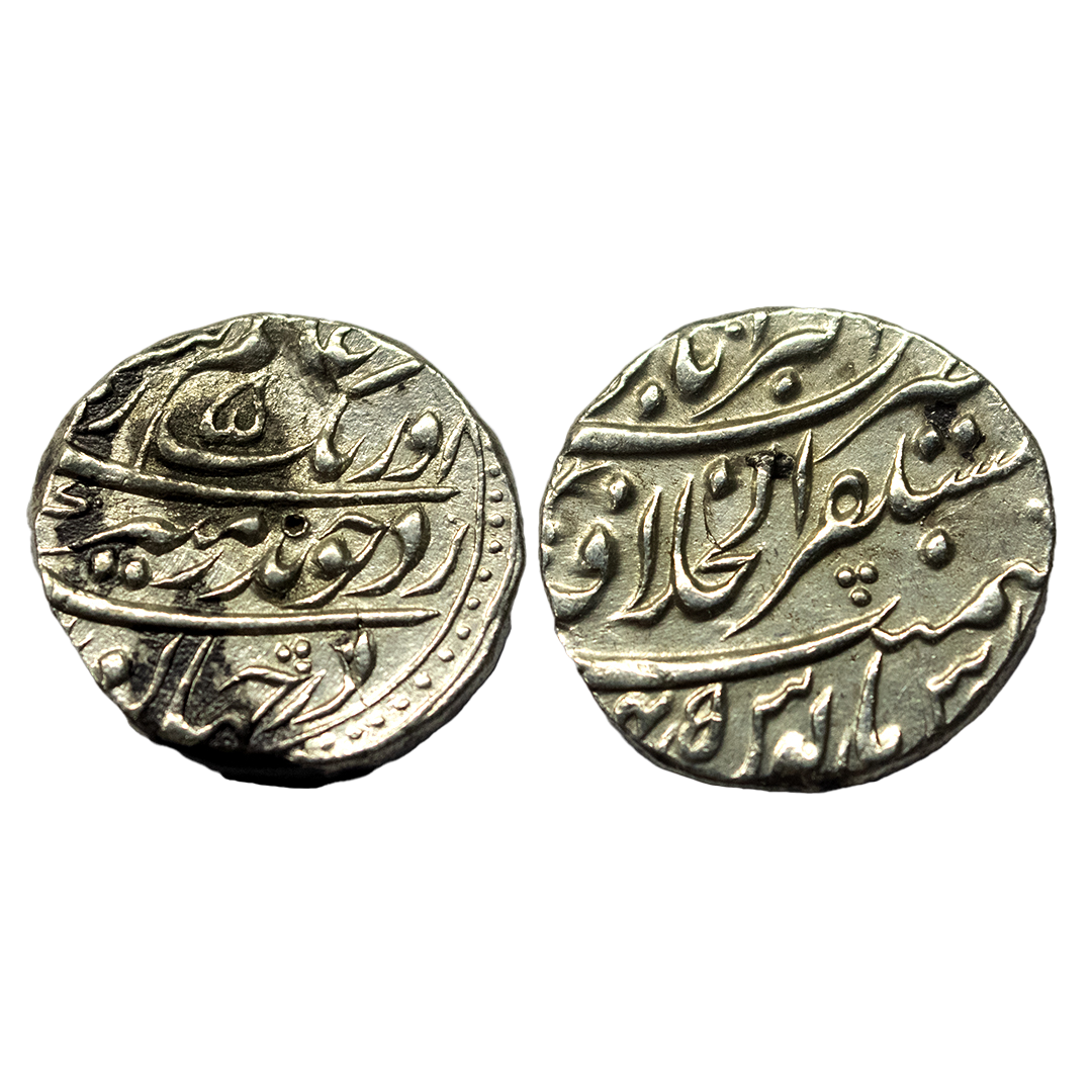 Aurangzeb (AH 1068-1118 / 1658-1707 AD), Silver Rupee, 11.54Grms, Ahmadabad Mint, AH 1107, RY 7, Badr-i-munir couplet. (KM # 300.2).