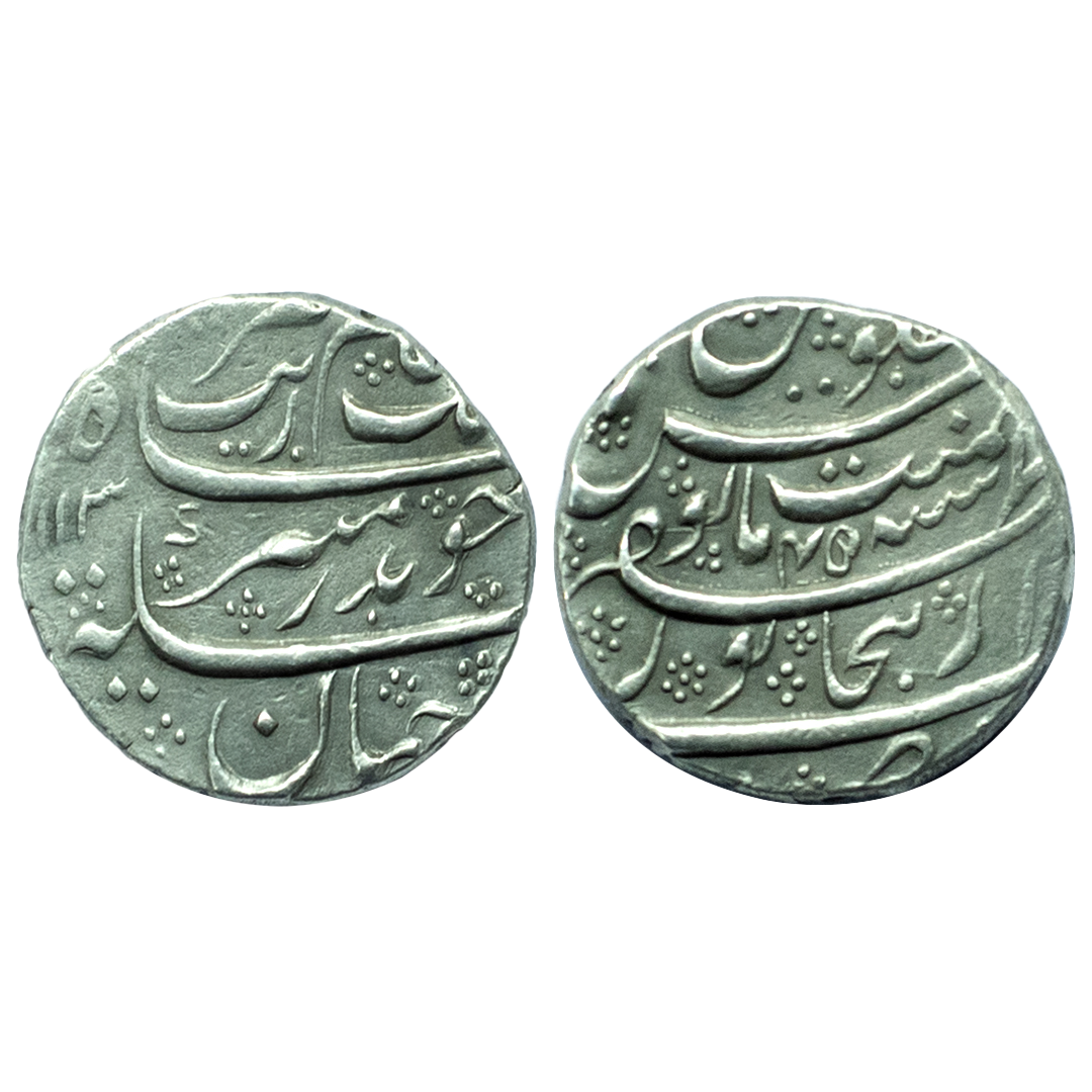 Aurangzeb (AH 1068-1118 / 1658-1707 AD), Silver Rupee, 11.54Grms, Ahmadabad Mint, AH 1107, RY 7, Badr-i-munir couplet. (KM # 300.2).
