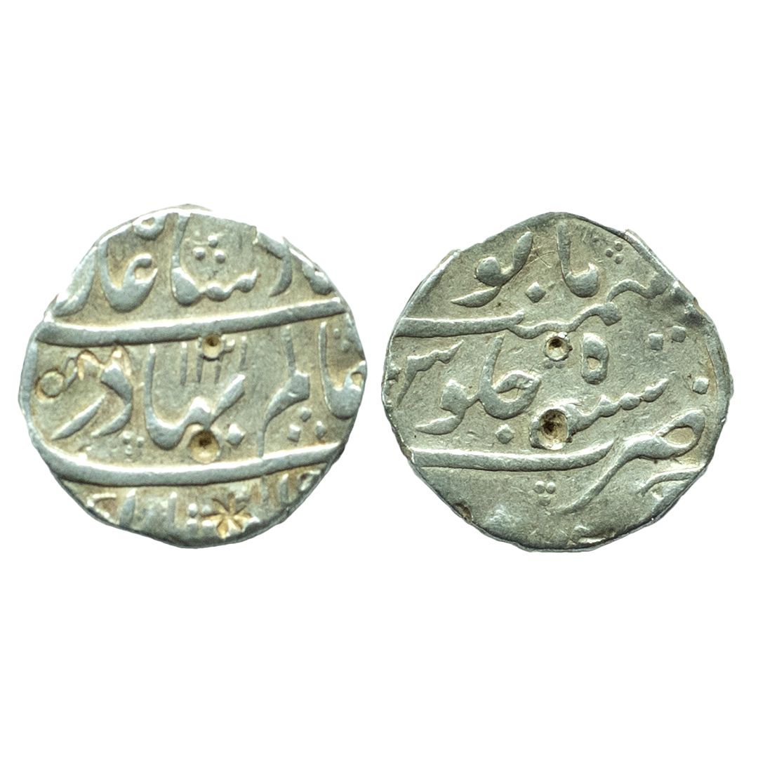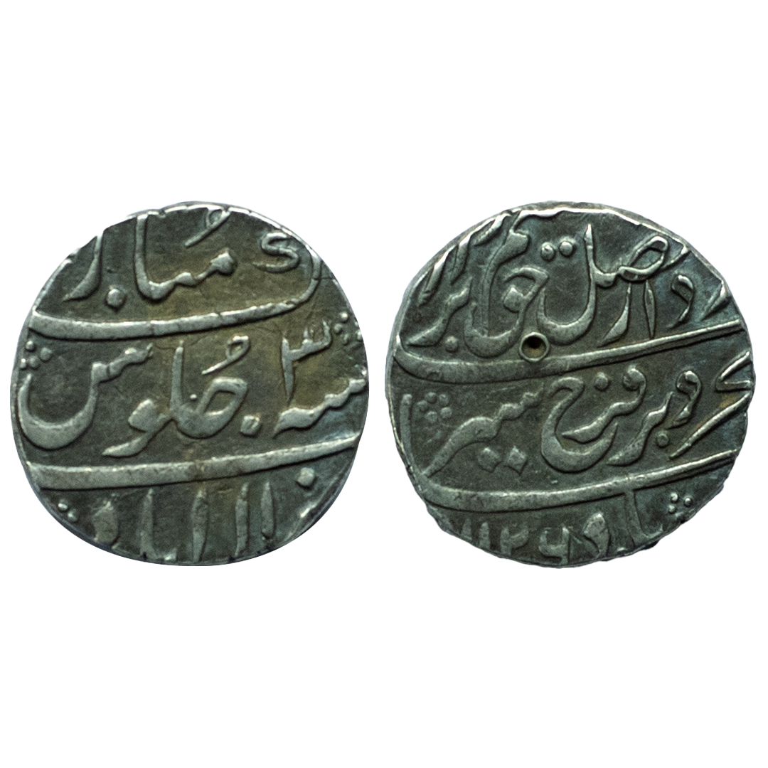 Shah Alam Bahadur, Silver Rupee, 11.28g, Mustaqir al-Khilafat Ajmer Mint, RY Ahd, complete mint name and epithet visible at top (KM 348.4). Very Fine+, Scarce.