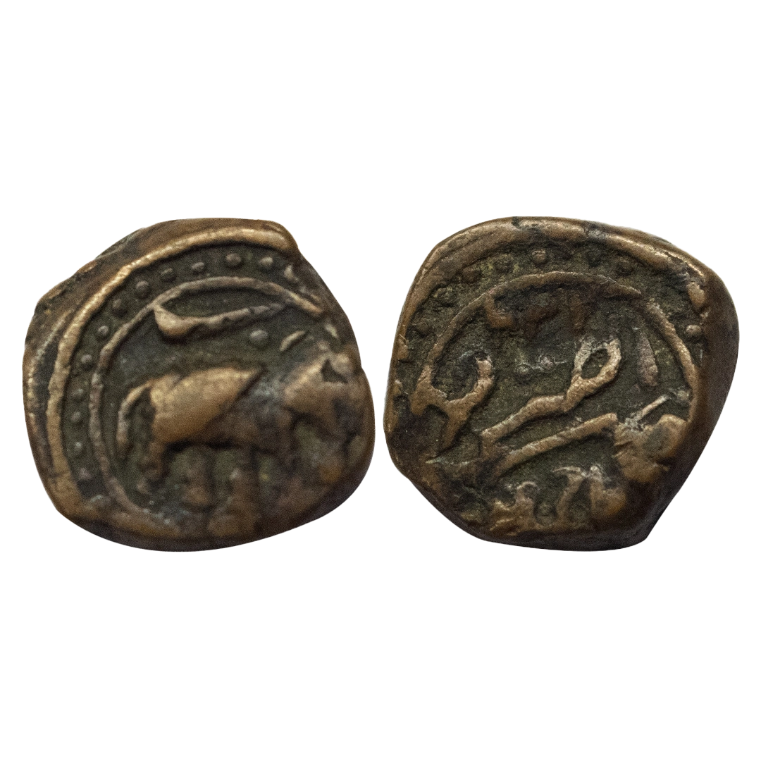Independent Kingdom, Mysore, Tipu Sultan (AM 1215-1227 / 1787-1799 AD), Copper ¼ Paisa, 3.12Grms, Patan Mint, AM 1226, Obv: Elephant to right above Persian letter ‘Be’, Rev: Mint name and date. (KM # 121.7).
