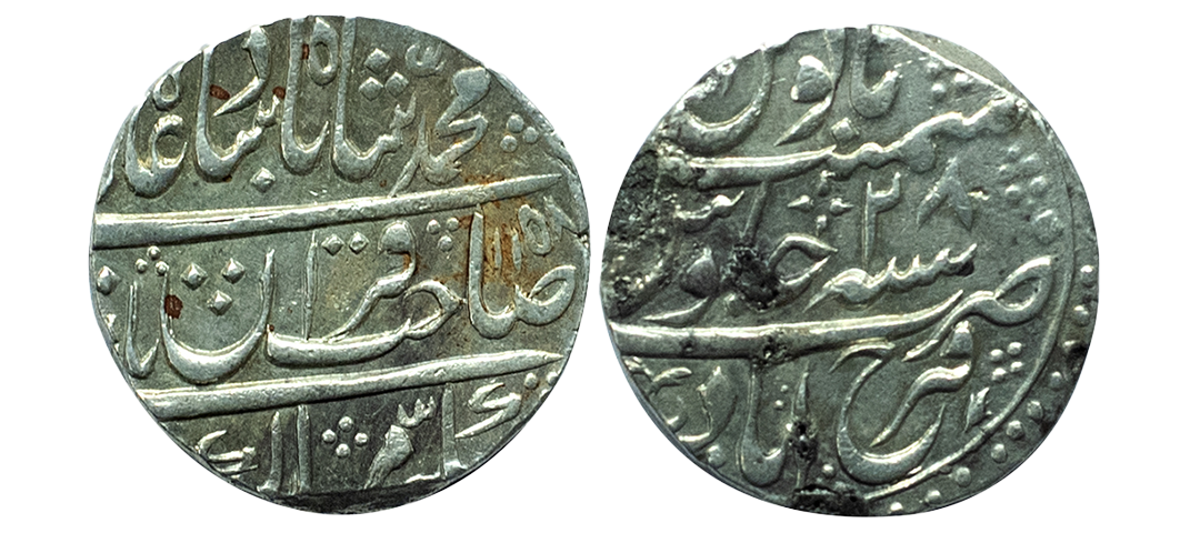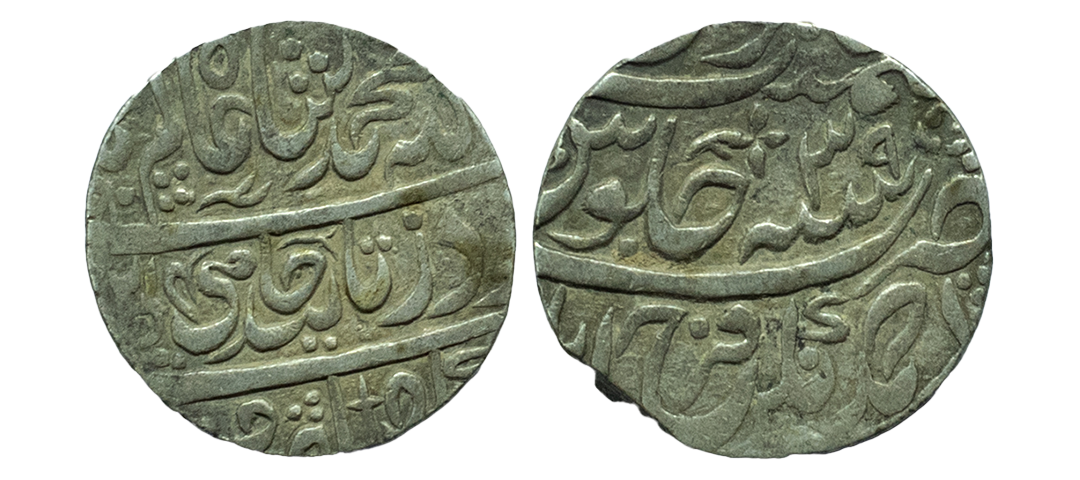 Independent Kingdom, Tripura, Rajadhara Manikya with Queen Satyavati Mahadevi (SE 1508-1531 / 1586-1599 AD), Silver Tanka, 10.70Grms, SE 1508, OBV: lion to left with a standard above, flag tied to shaft, with date Saka 1508 below, within circle, outer border of circles with central pellet & samall pellet added to left of standard, REV: Sri Sri Yuta Raja/dhara Manikya/Deva Sri Satyava/ti Maha Devyau in four lines within square. (R&B # 185 type). Extremely Fine, Big flan, Rare.