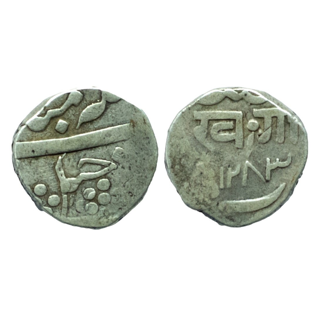 Baroda, Khande Rao (AH 1273-1287 / 1856-1870 AD), Silver Rupee, 11.45Grms, Baroda Mint, AH 1283, in the name of Khel Khas Samsher Bahadur on obv., Nagari letter 'Kha & Ga' on rev. (KM # Y12).