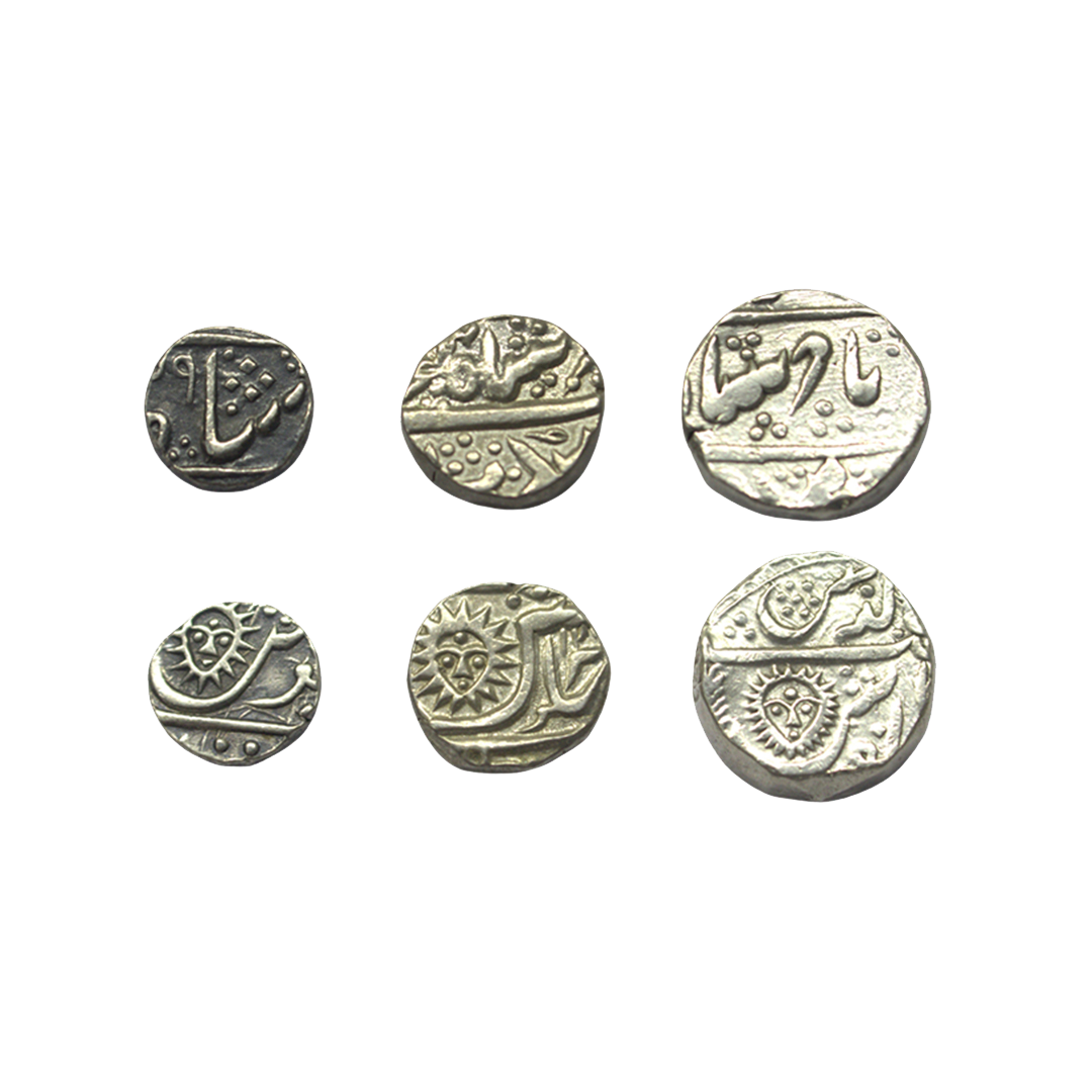 Indore, Silver ½ Rupee, 5.50Grms, Malharnagar Mint, in the name of Shah Alam II, sun face on julus seen on obv. (KM # 73).