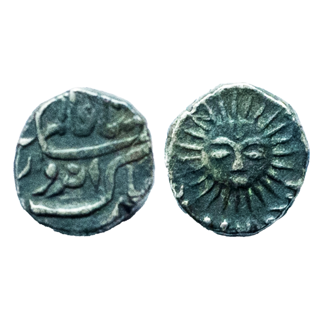 Indore, Silver ½ Rupee, 5.50Grms, Malharnagar Mint, in the name of Shah Alam II, sun face on julus seen on obv. (KM # 73).