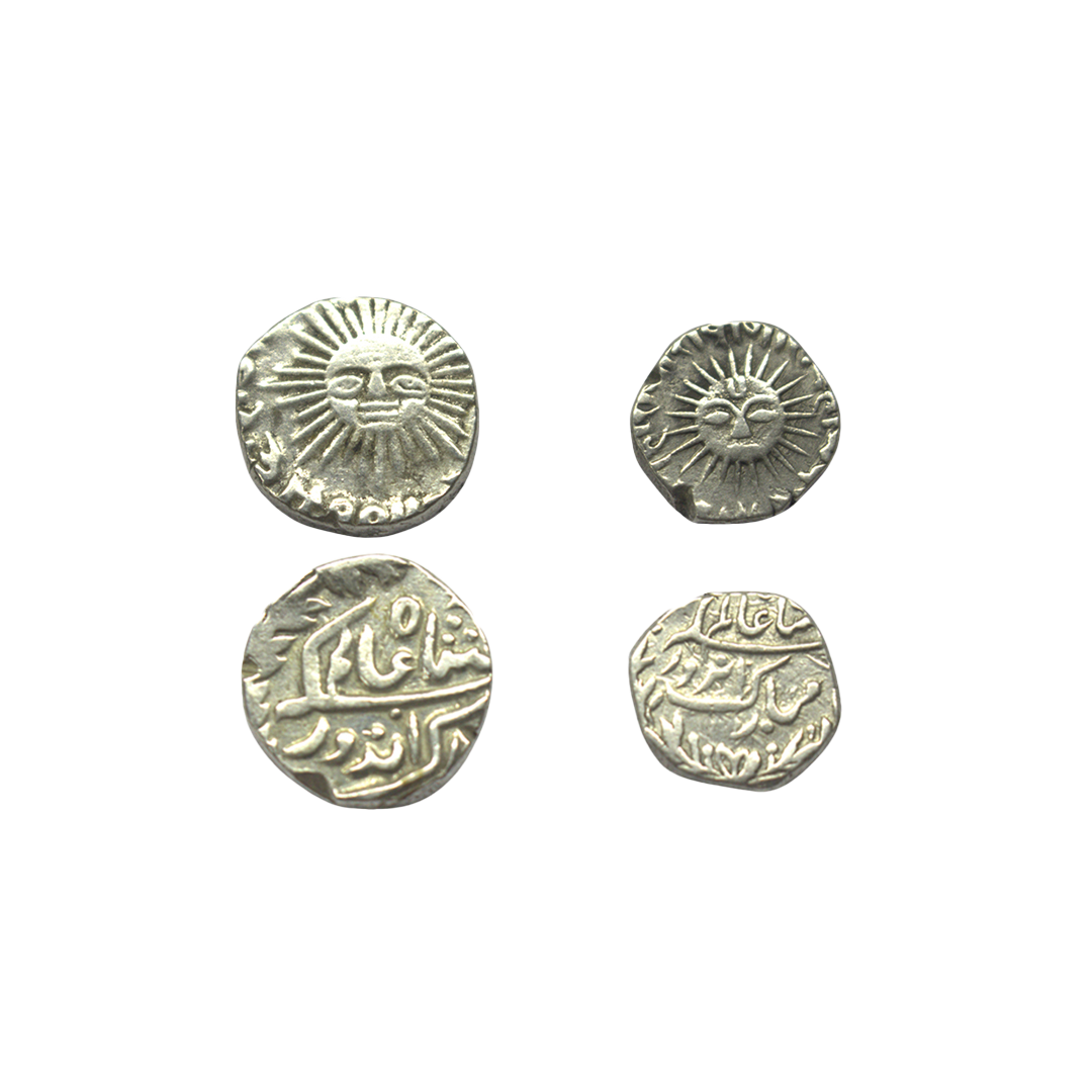 Indore, British Protectorate Issue, A set of Silver ¼, ½ and Rupee (3 coins), Malharanagar Mint, in the name of Shah Alam II, sun face symbol on rev.