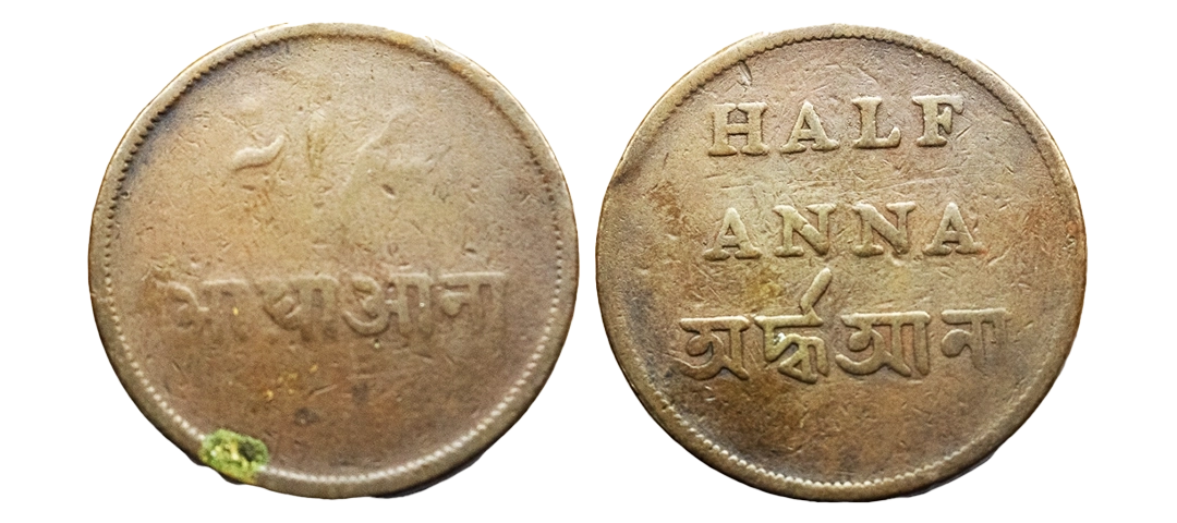 Indo-Danish, Tranquebar, Frederik IV, Copper Cash, 0.81Grms, issuer Danish east india company, Obv: Crowned double F4, Rev: DOC with value.