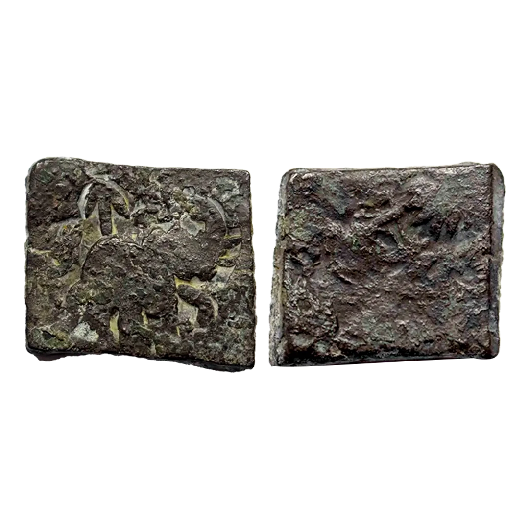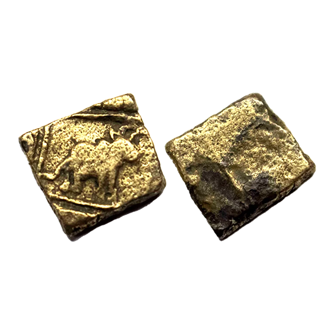 Ancient, Pre Satavahana, Copper Unit, Obv. Elephant, Rev. traces of tree in railing, 2.41g, about fine.