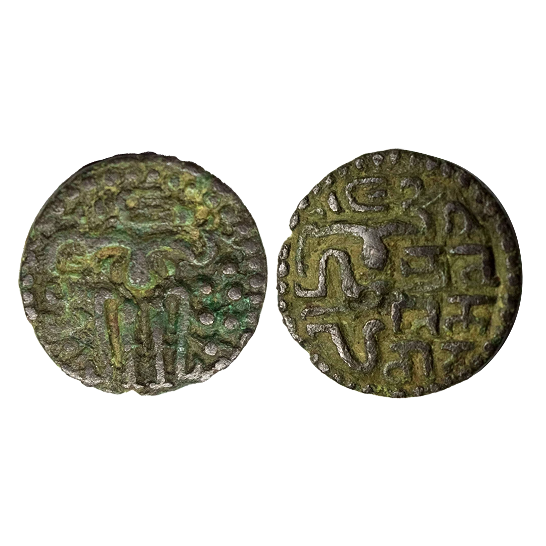 Ranas of Mewar, Rana Sangrama Simha or Sanga (1509-1527 AD), Set of 2 coins, Copper Falus & 1/2 Falus, Obv: Devanagari legend Rana Sangrama Sahi in a rectangular arabesque. Rev: Arabic inscriptional- al-Sultan bin al-Sultan, G&G # M267, G&G # M265, very fine, very rare as a set.