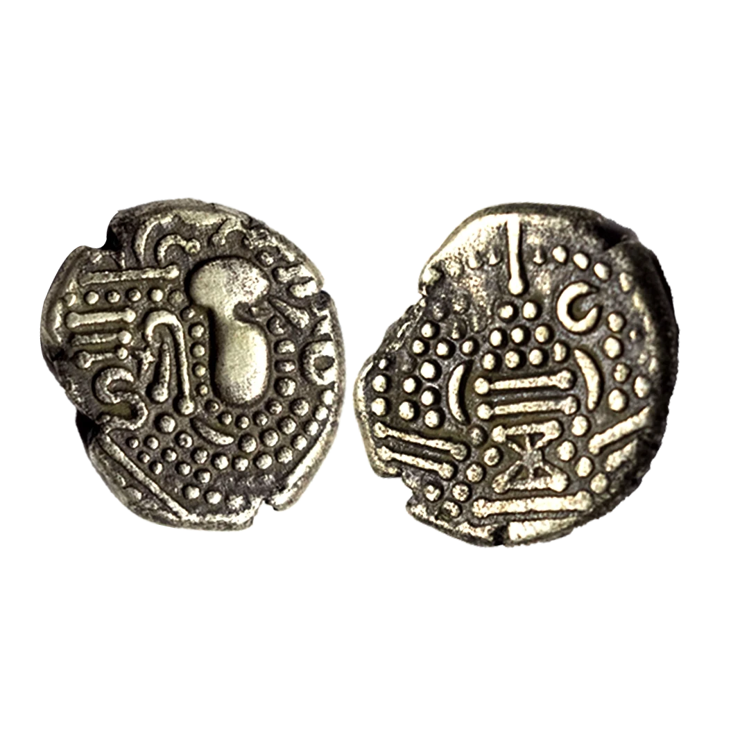 Ranas of Mewar, Rana Sangrama Simha or Sanga (1509-1527 AD), Set of 2 coins, Copper Falus & 1/2 Falus, Obv: Devanagari legend Rana Sangrama Sahi in a rectangular arabesque. Rev: Arabic inscriptional- al-Sultan bin al-Sultan, G&G # M267, G&G # M265, very fine, very rare as a set.