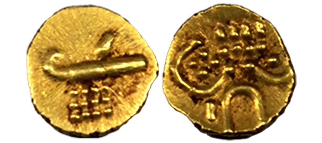 MEDIEVAL INDIA, Gahadavalas of Kanauj, Govinda Chandradeva (c. 1114-1154 AD), Gold 4 1/2 Masha, 3.98Grms, OBV: Seated goddess lakshmi, REV: Nagari legend in three lines, Srimad Govindchandra Deva. (Deyell # 145).