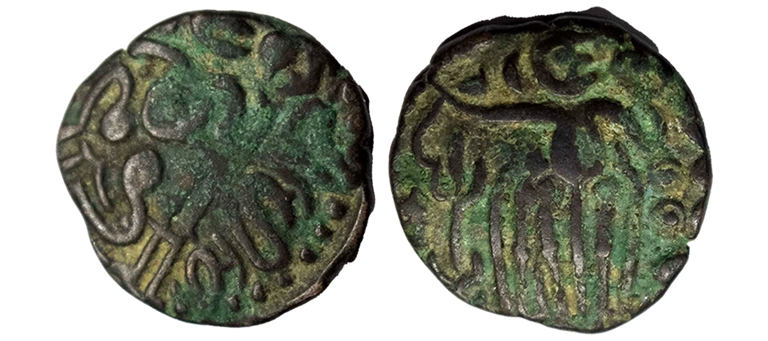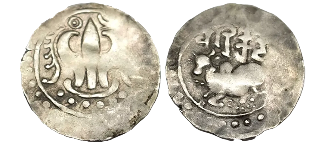 Eastern Bengal/Arakan region, 'Harikela' coinage, late series, silver ¼ unit, MLW-217 var., 1.88g. Obv: Recumbent bull seated facing left, brahmi legend Harikela above. Rev: Ornate Shrivatsa symbol, crescent moon and sun above.About Very fine, Very rare.