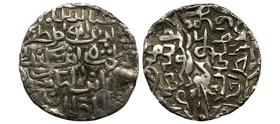 Sultans of Bengal, Silver Tanka in the name of Ghiyath Al-Din Azam, (AH 792-813/ AD 1389-1410) G&G B252, Ruler,s titles -long legend, in quadrifoil, yamin khalifat allah nasir al-mu minin ghawth al-islam wa'l muslimin khullada (allah) mulkahu within 8-pointed star no mint or date visible in margin. Weights 10.59g
