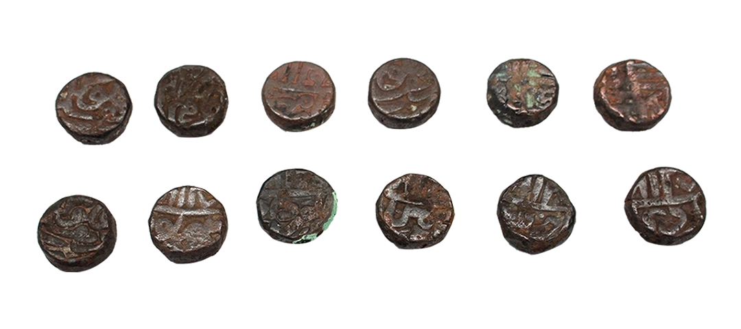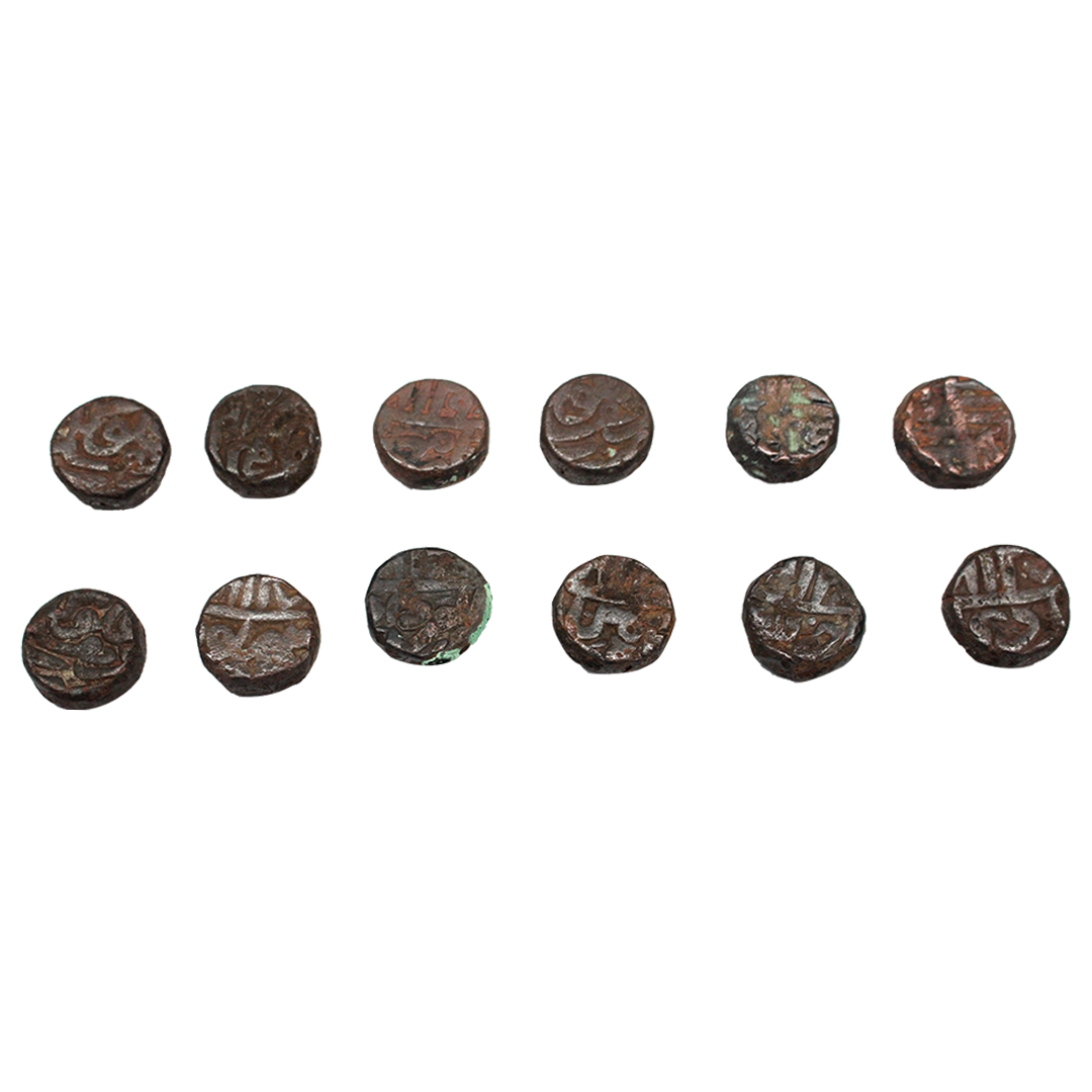 Akbar (1556-1605 AD), Copper Dam (12), Delhi Mint, Complete set of 12 Different months, KM 32.9. (12 Coins),Very Fine and Better, Scarce.