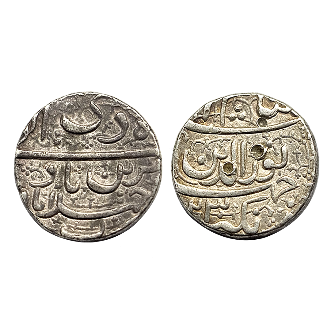 Jahangir, Silver Rupee, 11.21g, Agra Mint, Yaft couplet, reads as obv. ‘Yaft Dar Agra Ruye Zar Zewar’ that is The face of Gold received ornaments at Agra, rev. ‘Az Jahangir Shah Akbar Shah’ that is From Jahangir Shah, (son of) Shah Akbar, AH 1032/17 (KM 149.1). Extremely Fine, Rare.
