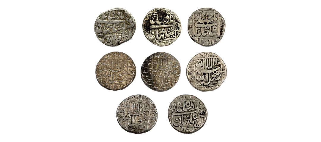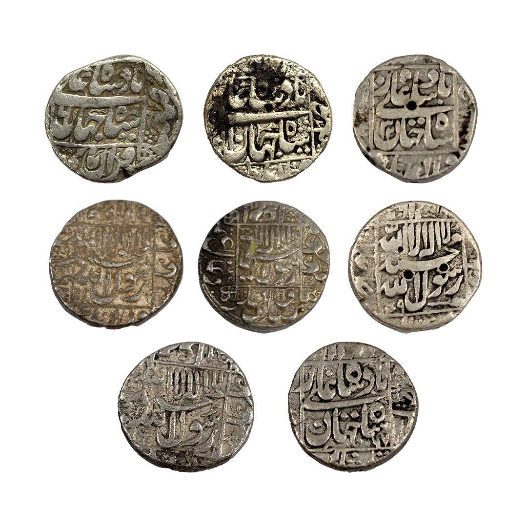 Shahjahan (1628-1658 AD) - silver rupee, 8pcs in lot, 'square areas' type, Kalima on obverse, Good Very fine .