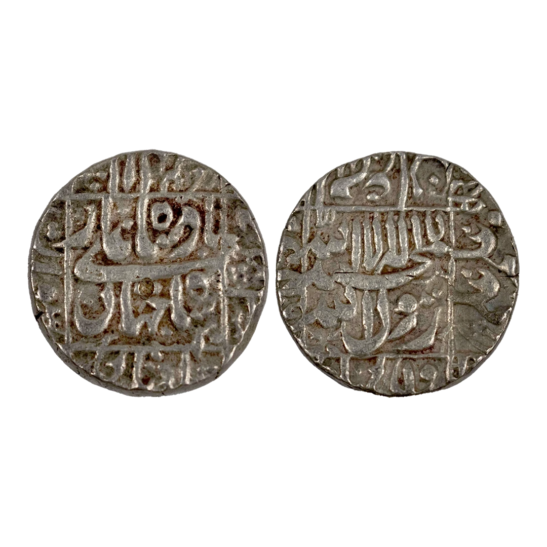 Shah Jahan, Silver Rupee, 11.49g, Surat Mint, legend in four lines on both sides (KM 222.13). Very Fine+.