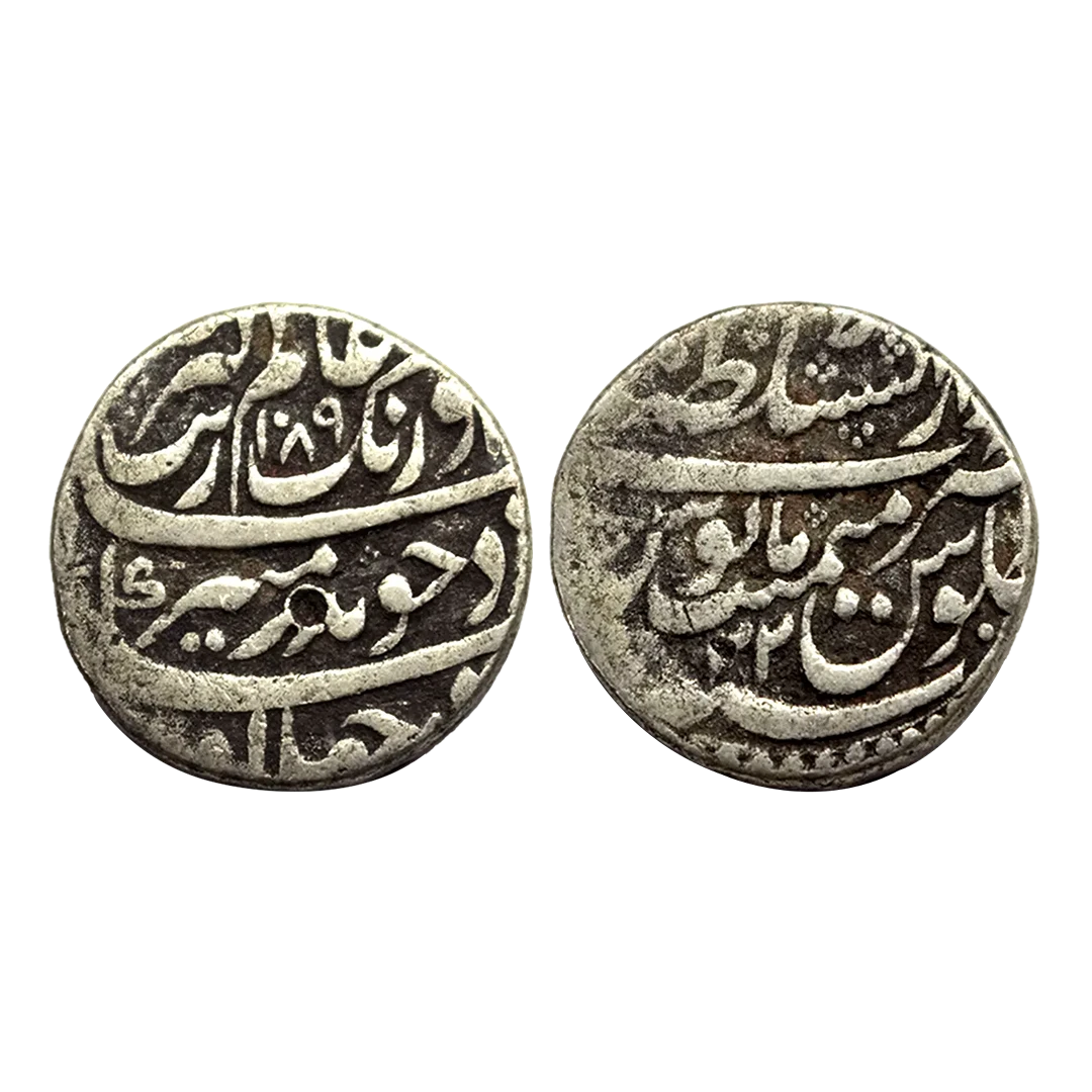 Aurangzeb (1658-1707 AD), silver rupee, Khambayat mint at bottom, 'Badar-e-munir' couplet, KM 300.51, 11.38g. fine, Very scarce.