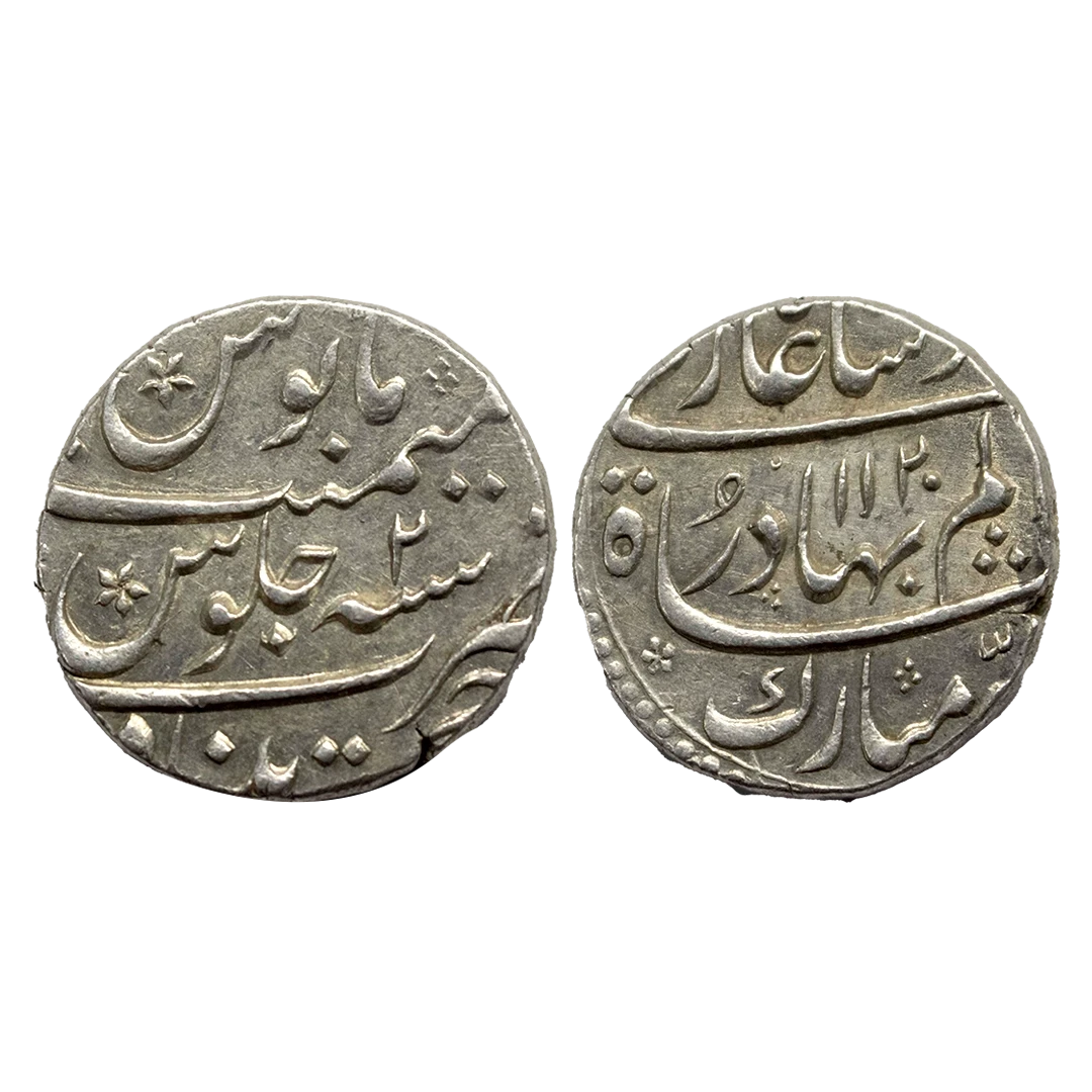 Mughal, Shah Alam Bahadur (AH 1119-1124, 1707-1712 AD), Silver Rupee, Khujista Bunyad Mint, AH 1120, RY 2, KM # 347.24,11.48g Very Fine, Scarce.