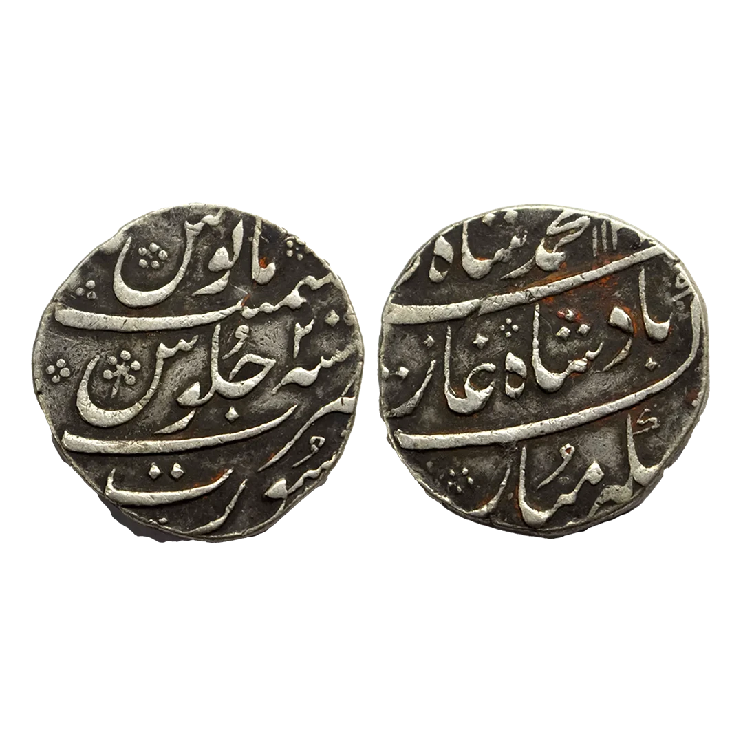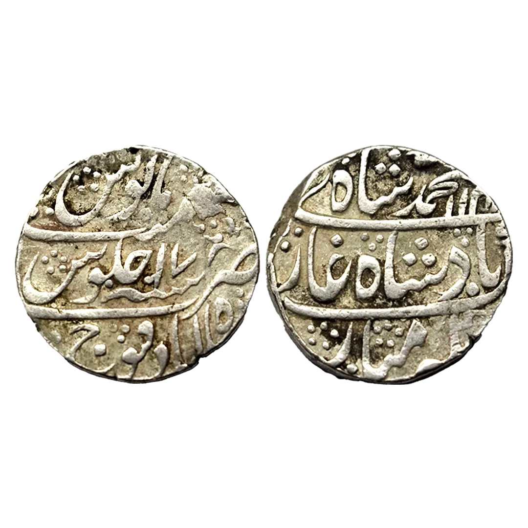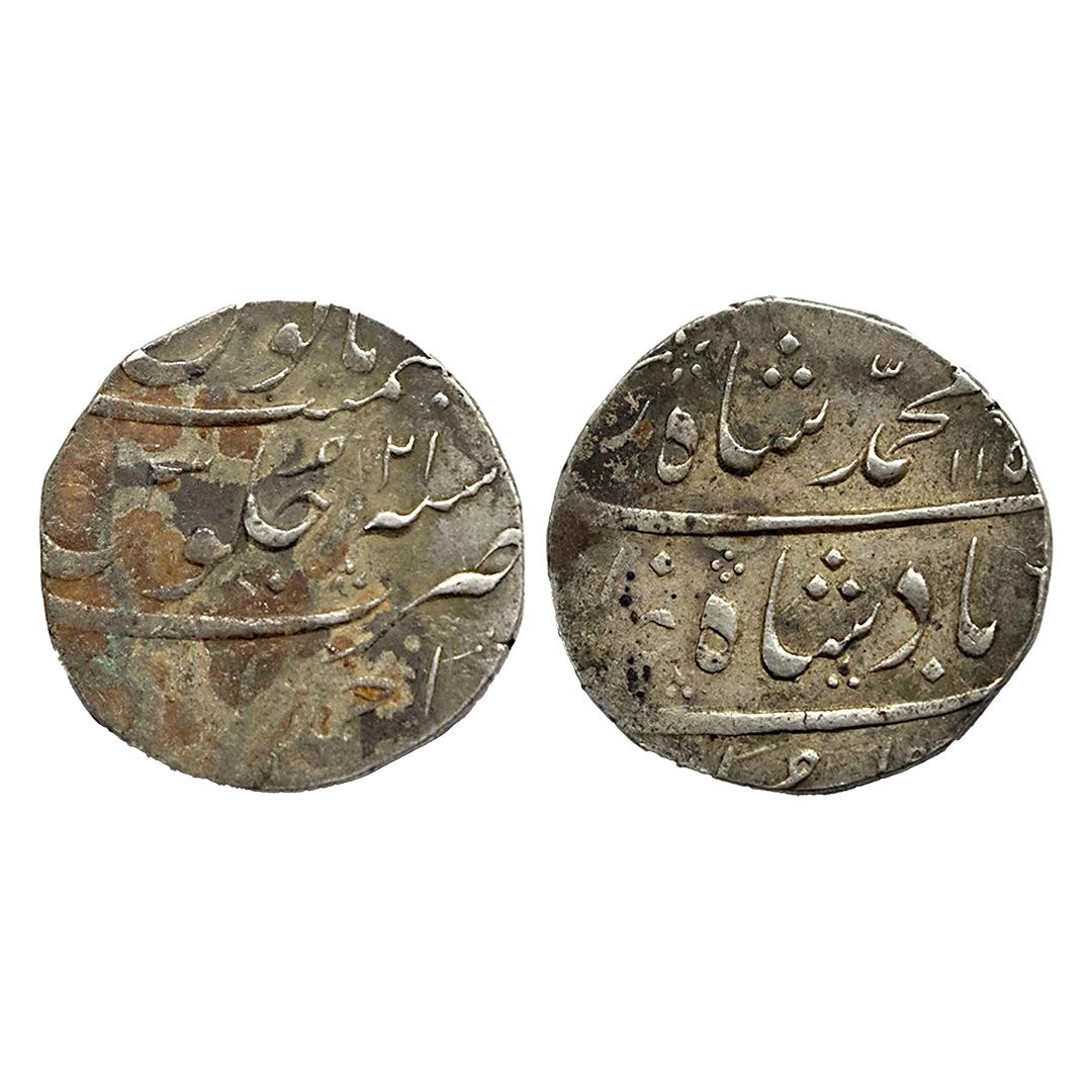 Rafi-ud-darjat (1719 AD), silver rupee, Murshidabad mint, 'Shahanshah-e-Dadegar' couplet, AH 1131/RY Ahd, KM 405.16, 11.54g, Very fine, Rare.