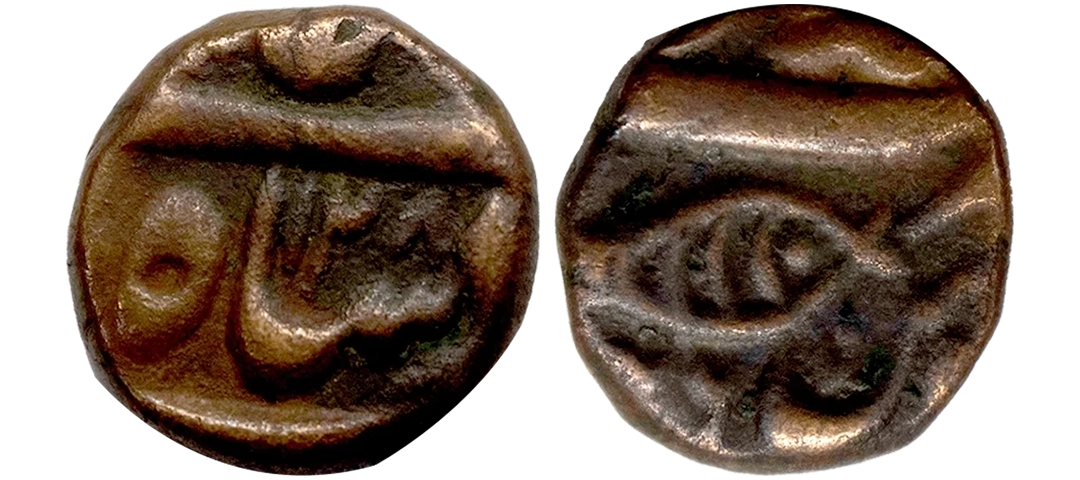 Manipur (c. 19 Century AD), Bell Metal Unit, Obverse: Crude Devanagari letter ‘Shri’, Reverse: Uniface, KM # C1, 0.48g very fine, very scarce.