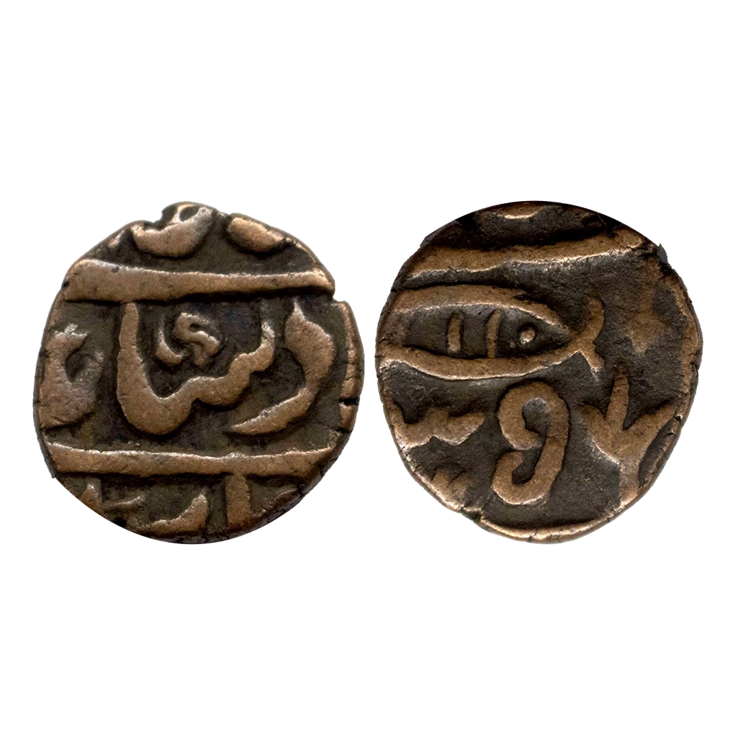 Maratha Issue, INO Shah Alam II (AH 1174-1221, 1759-1806 AD), Copper Paisa, Akbarabad Mint, RY 35, 4.06g Very fine, scarce.