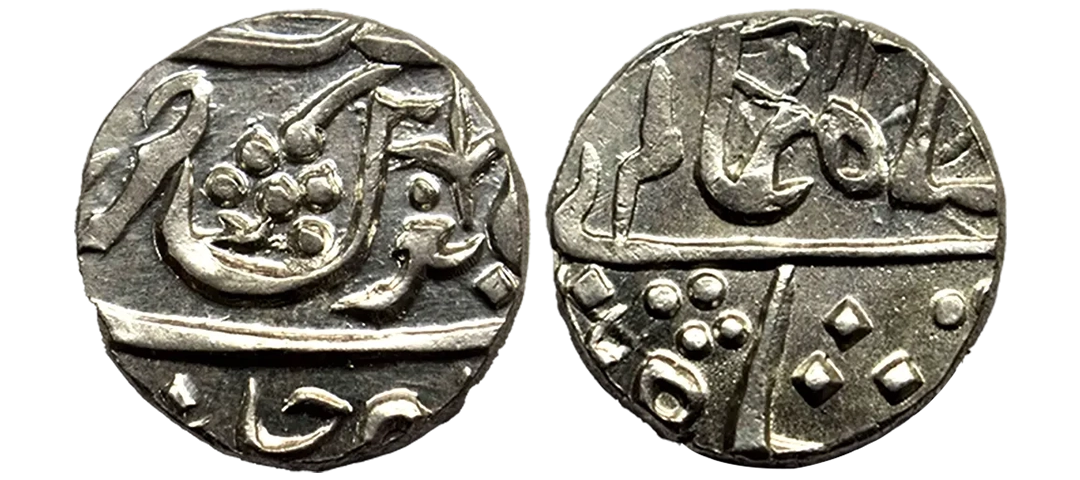 Maratha Confederacy, INO Shah Alam II (AH 1174-1221, 1759-1806 AD), Silver Rupee, Jafarabad urf Chandor Mint, KM # 260, M&W Page no. 57, Ref # T1c, 11.05g, extra fine, scarce.