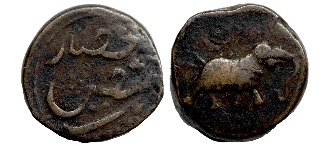 Mysore, Tipu Sultan (AM 1215-1227 / 1787-1799 AD), Copper Paisa, Faiz Hisar Mint, eelephant facing to right side. 11.35g, (KM # 43.3).