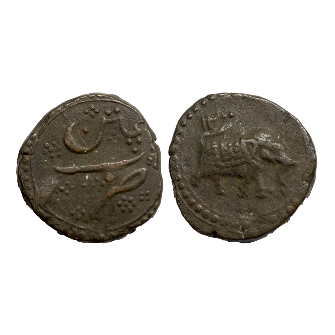 Mysore, Tipu Sultan (AM 1215-1227 / 1787-1799 AD), Copper Paisa, Faiz Hisar Mint, eelephant facing to right side. 11.35g, (KM # 43.3).