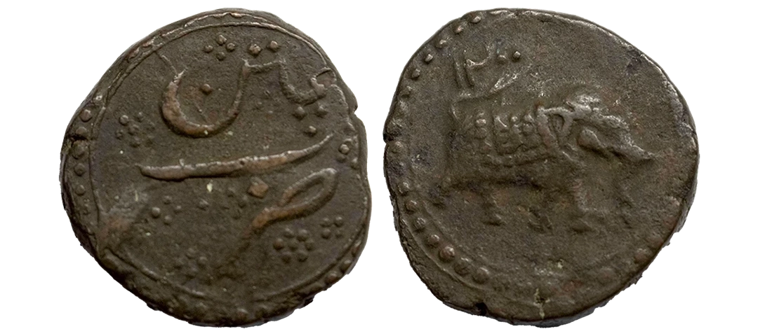 Mysore, Tipu Sultan (AM 1215-1227 / 1787-1799 AD), Copper Paisa, Patan Mint, AM 1200, elephant facing to right above date. 11.34g, (KM # 123.1).